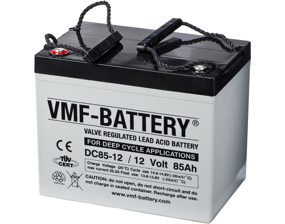 VMF DC85-12 est une batterie 12V 85Ah conçue pour les décharges cycliques. Elle convient parfaitement aux machines de nettoyage et aux transpalettes électriques.