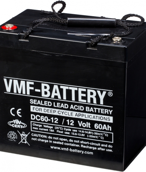 VMF DC60-12 is een 12V 60Ah batterij die ontworpen is voor cyclische ontladingen. Zeer geschikt voor scootmobiels, kuismachines en elektrische transpalleten.
